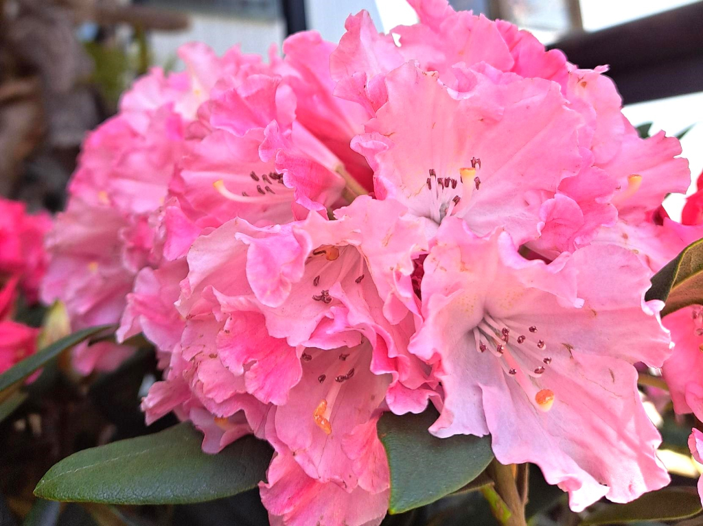 シャクナゲの花は、複数個が集まって一つの大きな花のように見えます。一つ一つの花も大きくて、とても豪華な印象ですよね!花をよく観察すると、中心部に斑点のような黄色の模様があります。これは、『ネクターガイド(花蜜標識)』というものです。ハチなどの昆虫に向けて、蜜のありかを教える役目を果たしていると言われています。