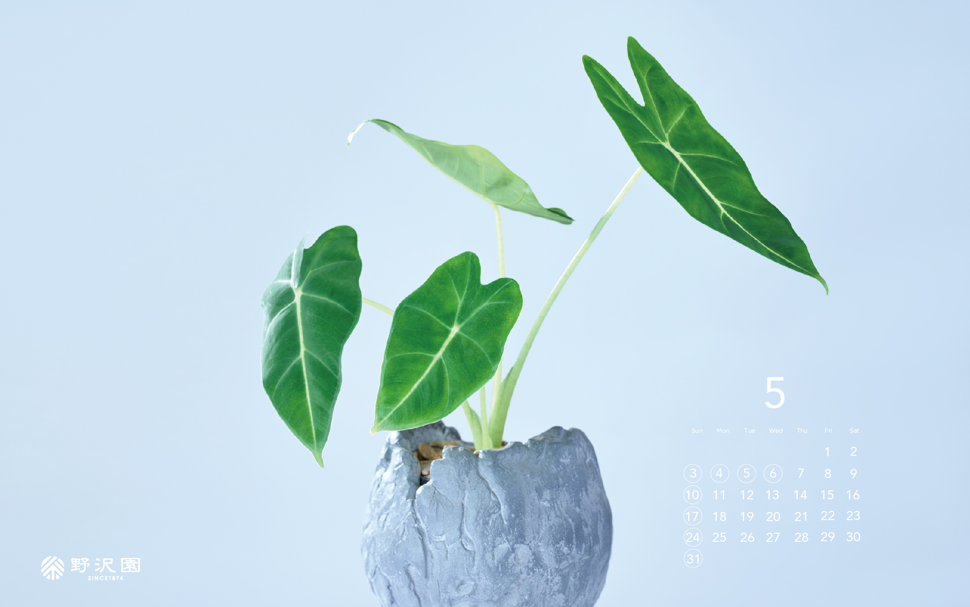 2026年5月分の野沢園オリジナル植物カレンダーを作成しました。PCやスマホにダウンロードしてご利用ください。