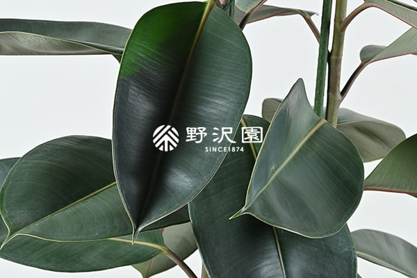 フィカス・バーガンディは標準的な楕円形の葉の形をしていますが、同じゴムの木の仲間は葉の形が変化に富んでいます。例えば細長い葉の「ショウナンゴム」、三角形の「トライアンギュラス」、葉の付根にカップのある「カップボダイジュ」などがあります。