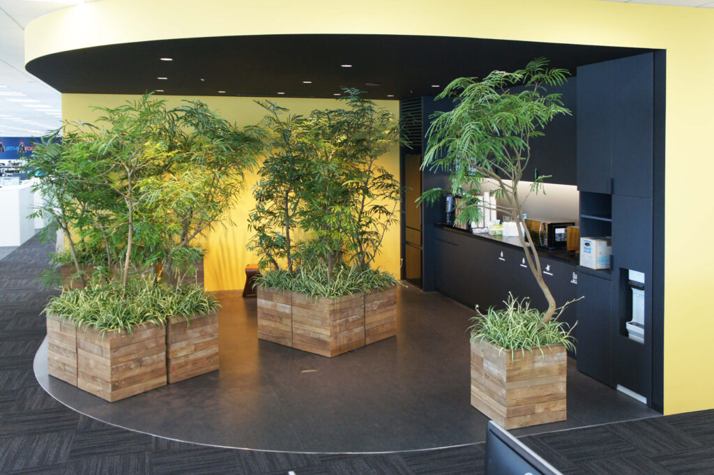 オフィスのフロアごとのイメージに合ったグリーンディスプレイを設置しています。